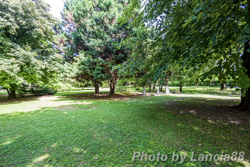 Vrt je fantastičan, i njegova pročelna celina je upadljivo uređena za šetnju ili boravak među lejama oblikovanih živih ograda koje ograđuju leje sa cvećem.